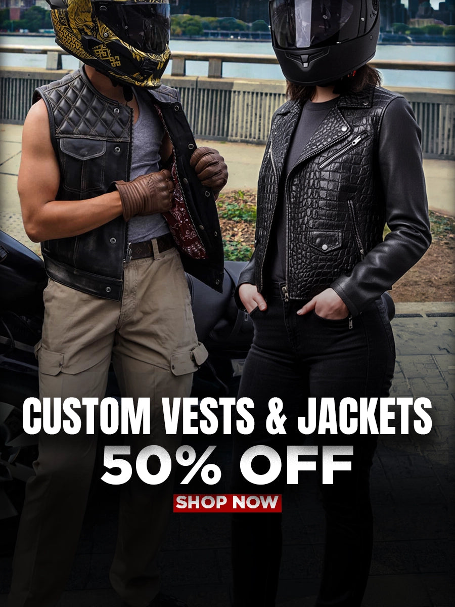 Each product is designed to keep you safe on the road while making a bold statement. With the Top Quality and Honest Prices, we’ve earned the trust of Motorcycle riders who demand the best. Explore our top-Quality textile vests, denim motorcycle vests, leather bags, motorcycle boots, and even guardian bells to complete your biker style.