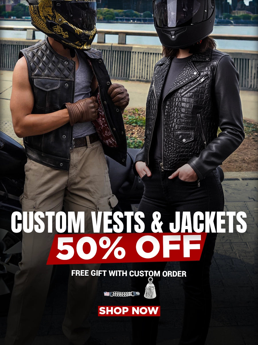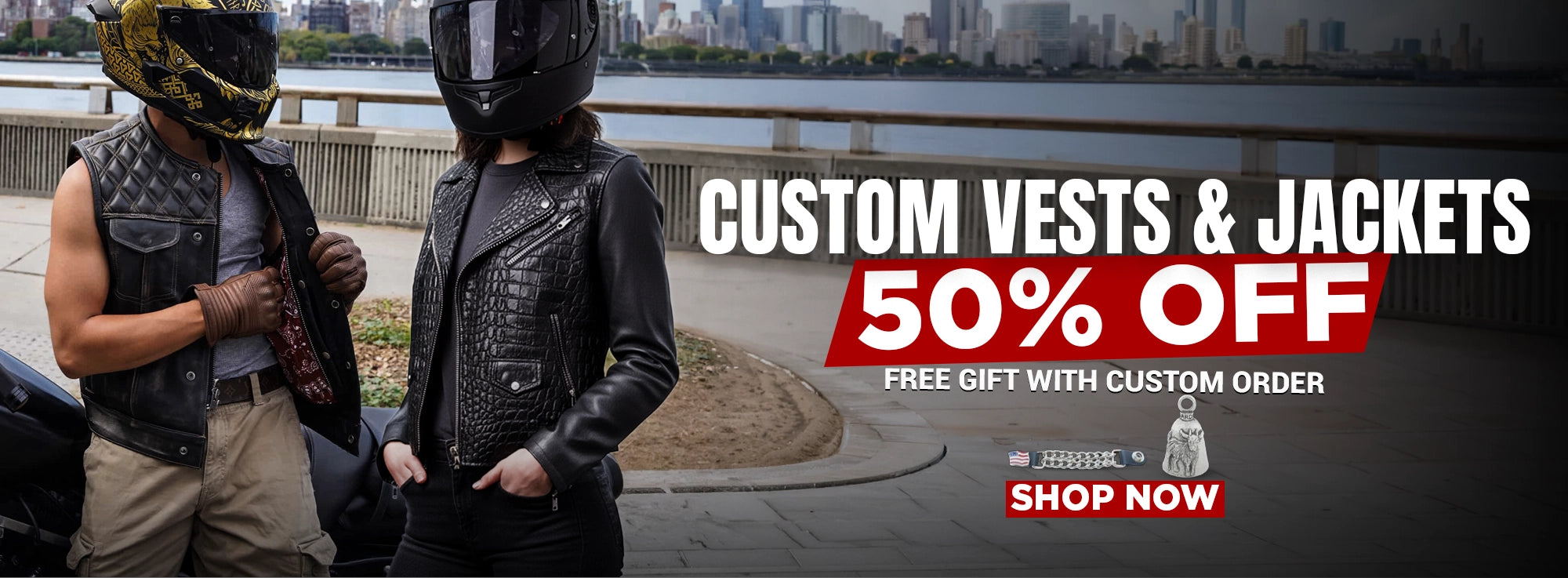 While some riders choose a simple, individual style, many riders use this option to create a custom club vest that symbolizes their group. Either way, being involved in the vest's design makes it more meaningful. Built for comfort, functionality, and personal taste, a custom leather biker vest can be as basic or as detailed as you like. Custom may be the best option if you want to give your gear a more unique touch.