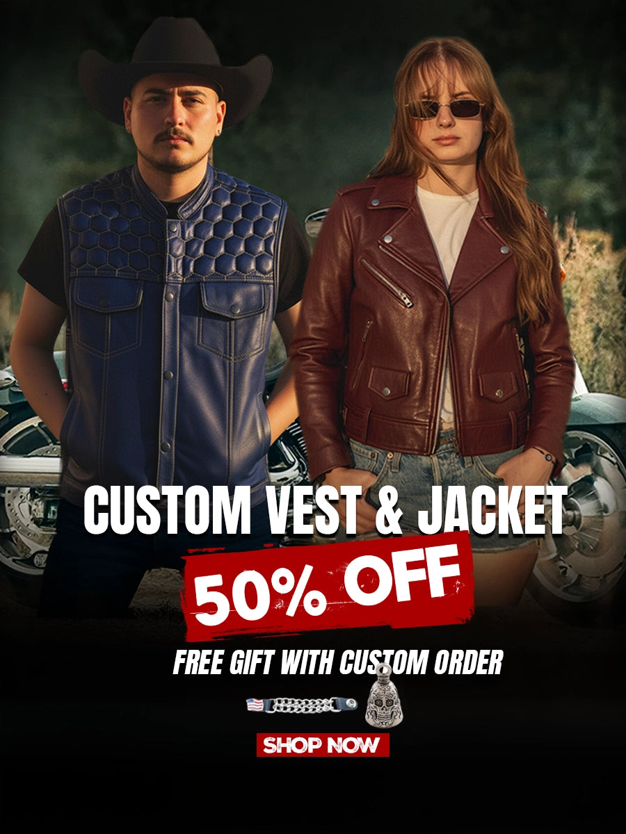 While some riders choose a simple, individual style, many riders use this option to create a custom club vest that symbolizes their group. Either way, being involved in the vest's design makes it more meaningful. Built for comfort, functionality, and personal taste, a custom leather biker vest can be as basic or as detailed as you like. Custom may be the best option if you want to give your gear a more unique touch.