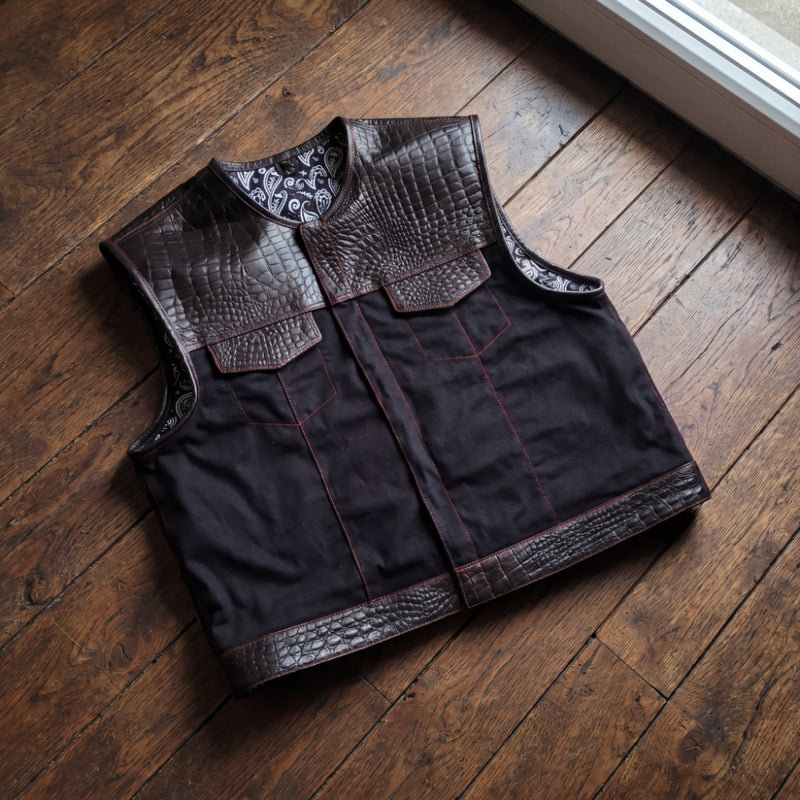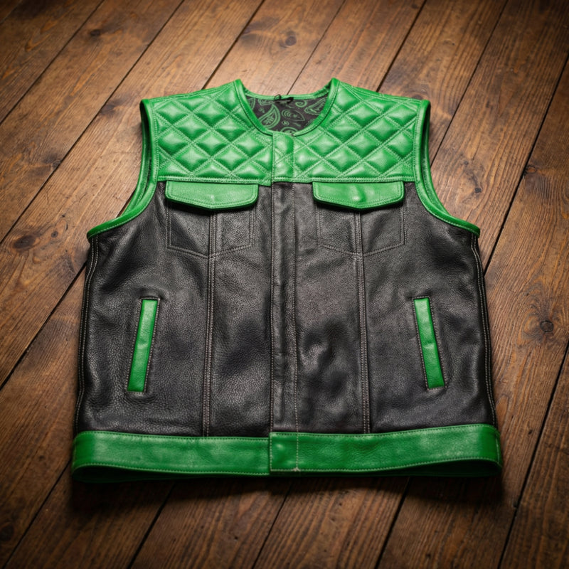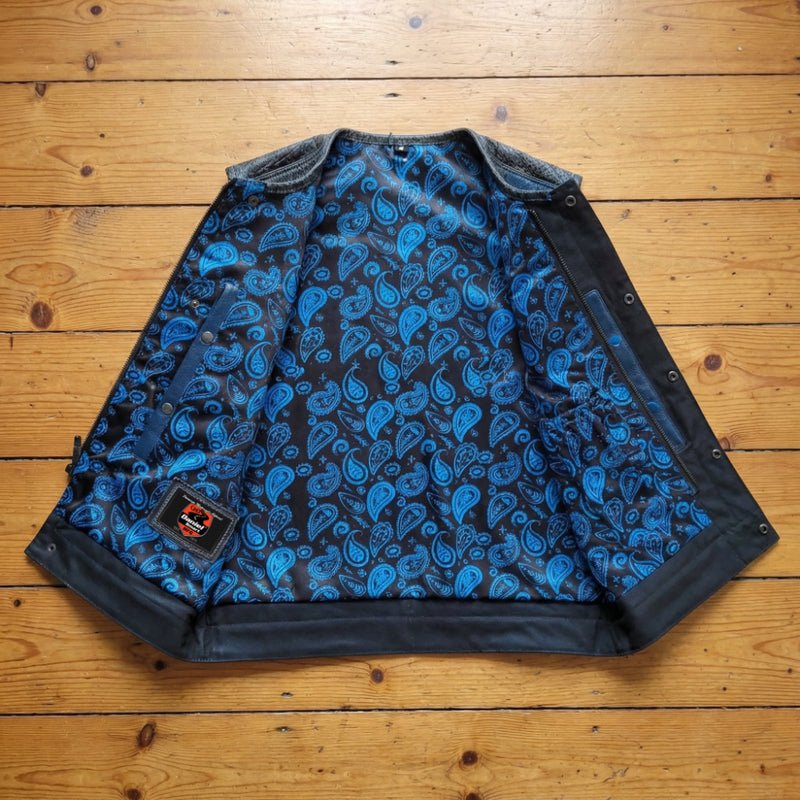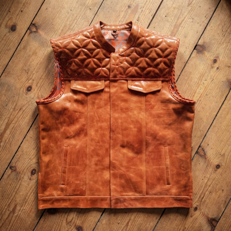 Are you looking for a fully custom MC vest or jacket with hidden carry pockets and reinforced shoulders? Or perhaps a custom-made leather vest or jacket with vintage brass hardware and a suede lining? We provide both substance and style.