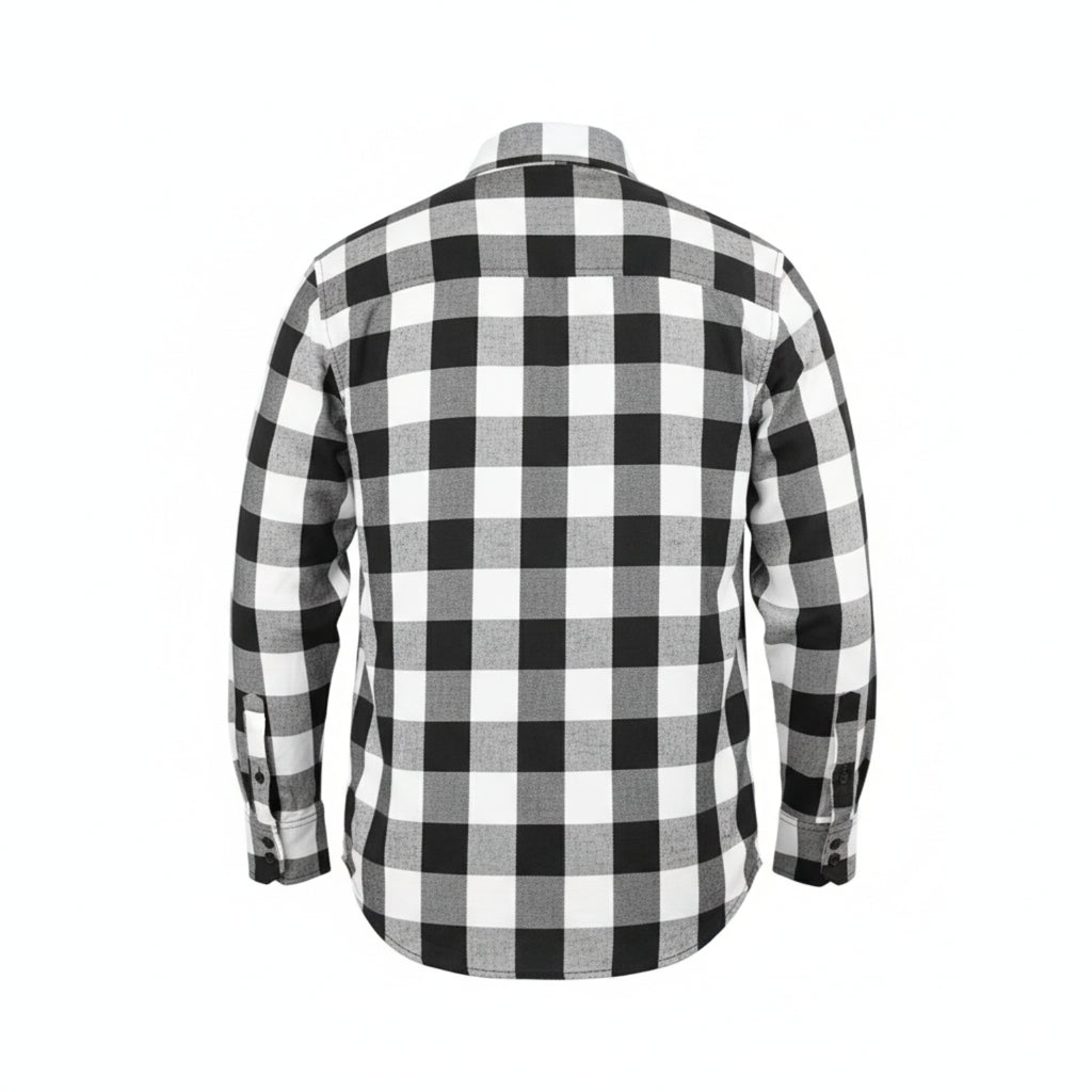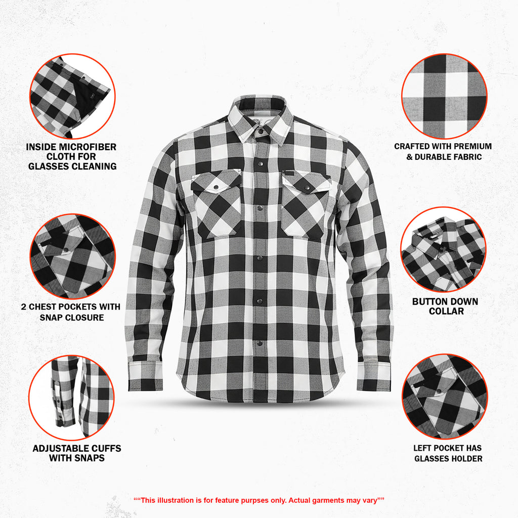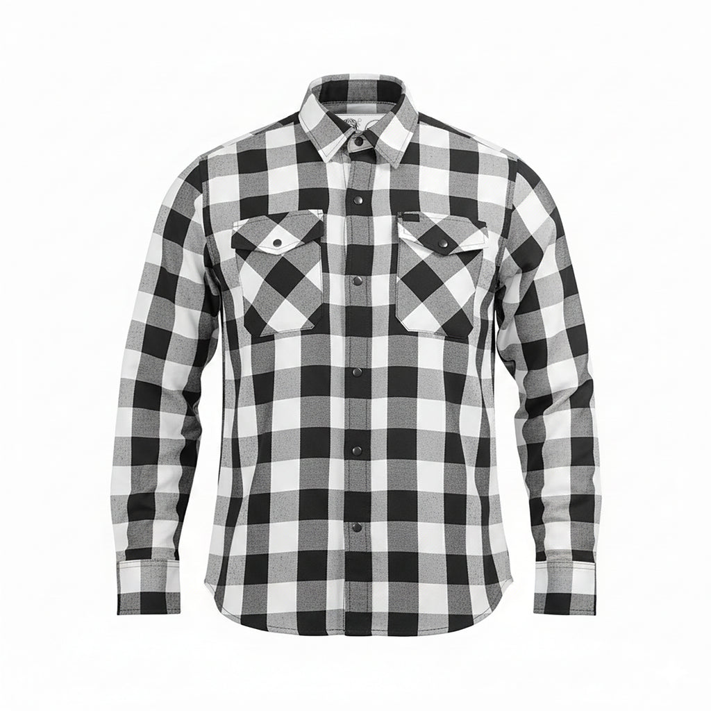 Built from premium, durable fabric, the White Soul Men’s Flannel delivers rugged performance with clean, timeless style. The button-down collar and heavy-duty snap closures provide a secure, reliable fit for every ride and everyday wear. Two snap-closure chest pockets offer practical storage, with the left pocket featuring a built-in glasses holder for added convenience.