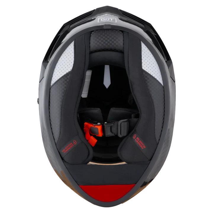 The helmet’s moisture-wicking, hand-washable interior keeps your head cool and fresh on long rides. Designed with passive chin and forehead ventilation and emergency quick-release cheek pads, this helmet combines airflow and practicality with safety.