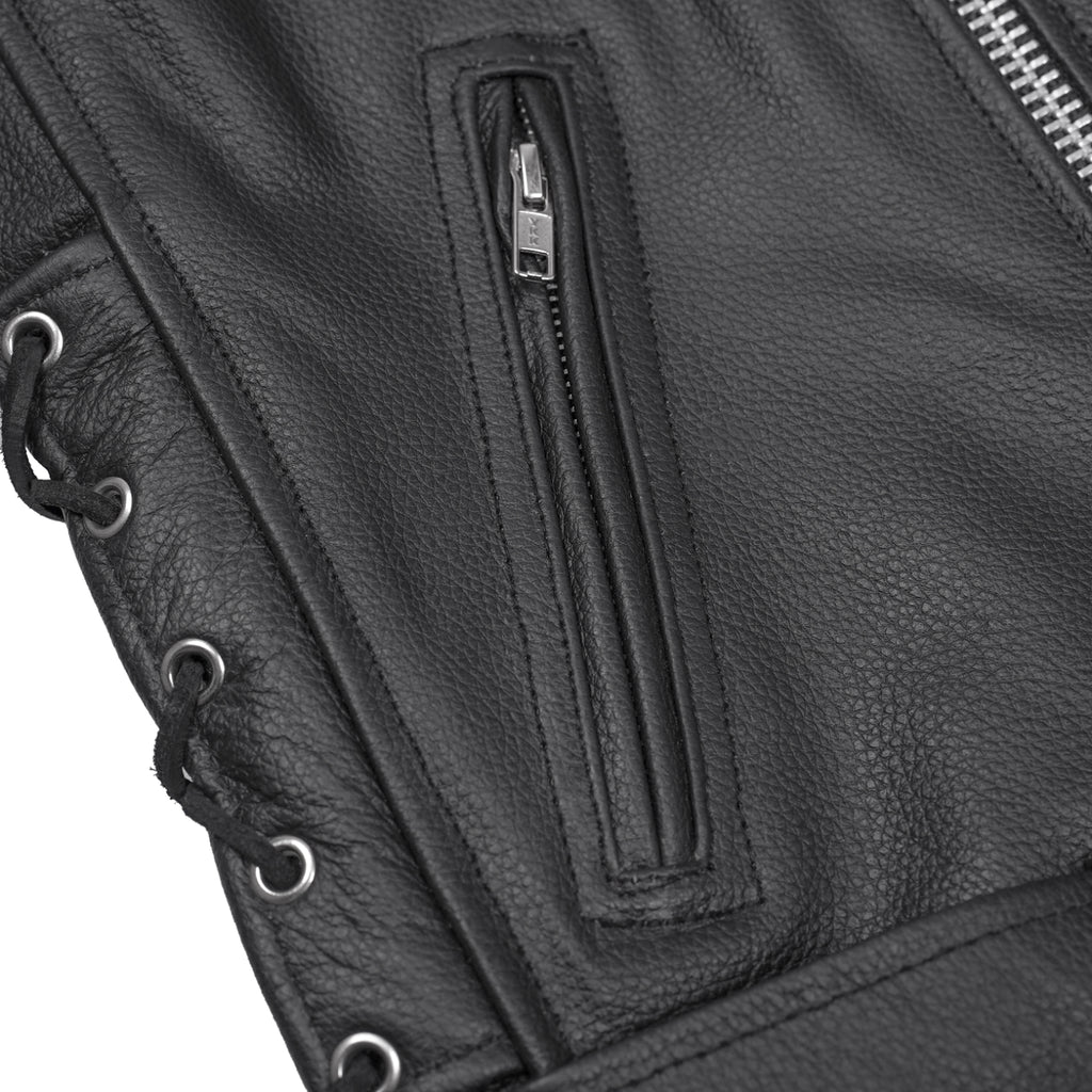 Fit is just right on your body with adjustable side laces and a half belt. Hit the open road or cruise through the city; the full-action back ensures full movement during the journey. The best part is that, inside, you'll find a Conceal Carry pocket with built-in holsters, so you can safely store your essentials while maintaining a sleek profile.