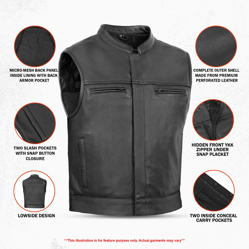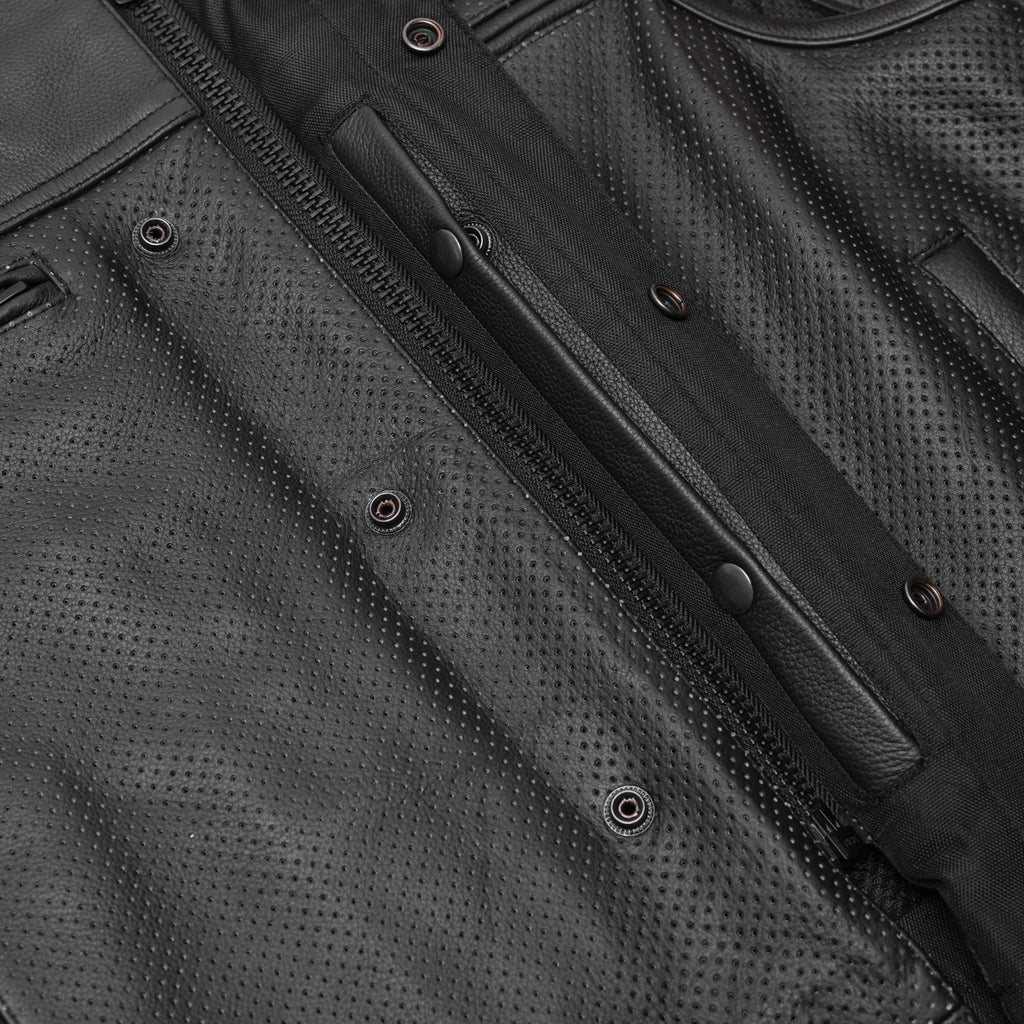 The Mile Maker men’s leather motorcycle vest is built for those who live to ride — bold, confident, and always in an adventure mood. Crafted from premium black leather, this vest combines rugged strength with modern design. Every stitch and seam is engineered for endurance, from its reinforced Cordura 600D interiors to its heavy-duty YKK zippers that deliver lasting reliability on and off the road. It features dual concealed carry pockets, each equipped with elastic holsters, offering maximum practicality for every ride. Stylish strip detailing across the front adds to its rugged character, complemented by heavy thread stitching and a built-in hanging loop for convenience. The Mile Maker — where style meets strength, built for riders who make every mile count.