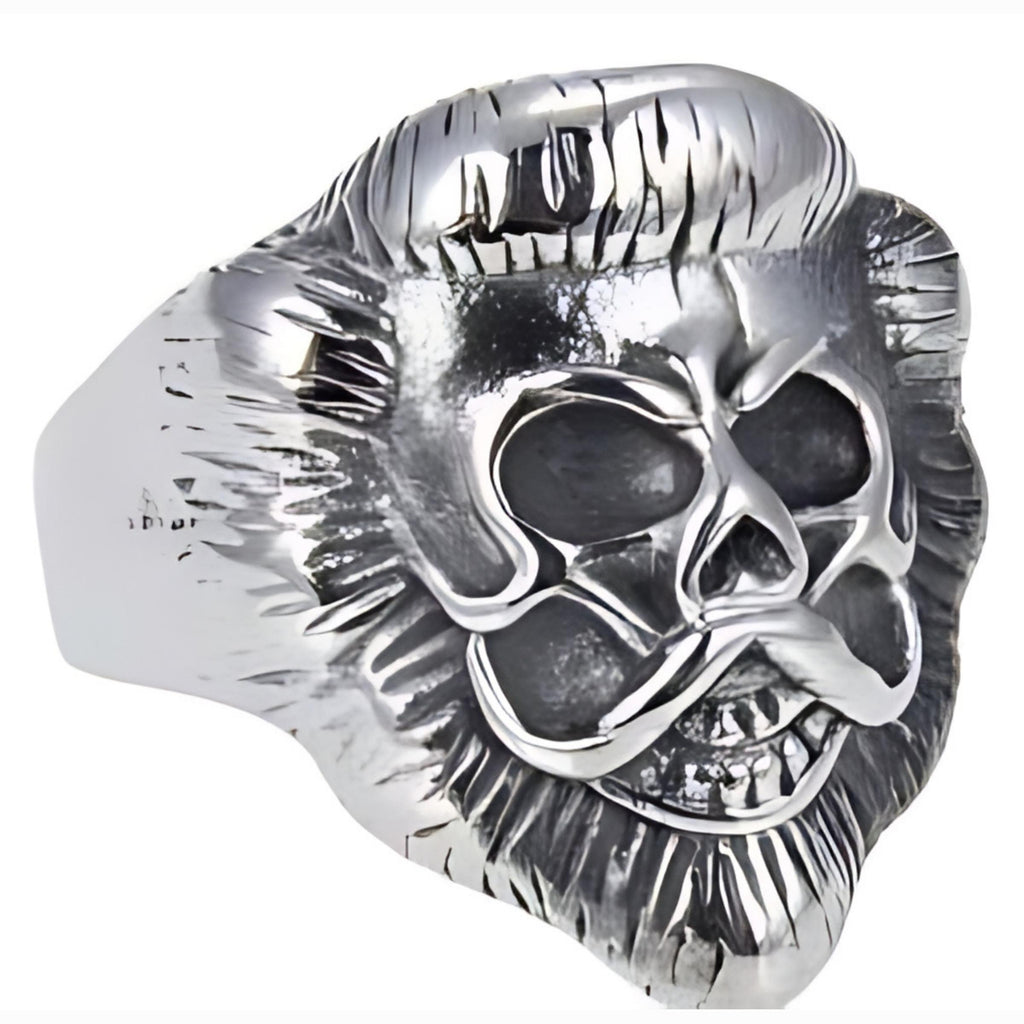Stainless Steel Lion Face Skull Biker Ring