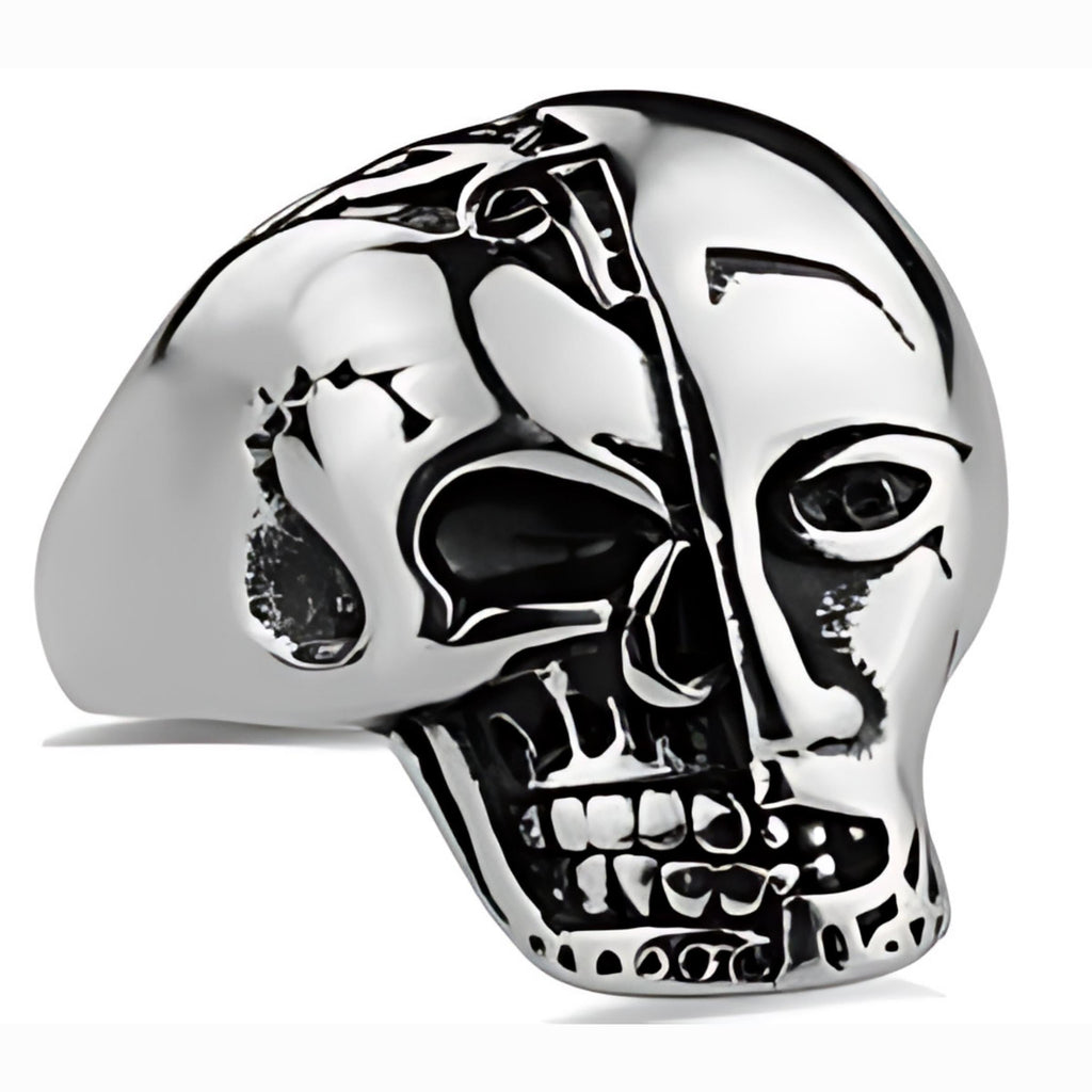 Stainless Steel Terminator Skull Face Biker Ring