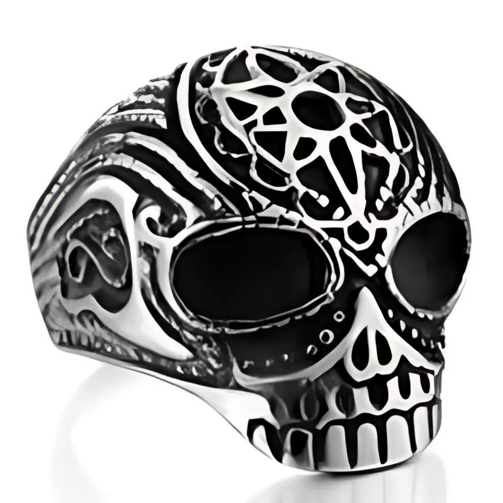 Stainless Steel Flower Cane Skull Biker Ring