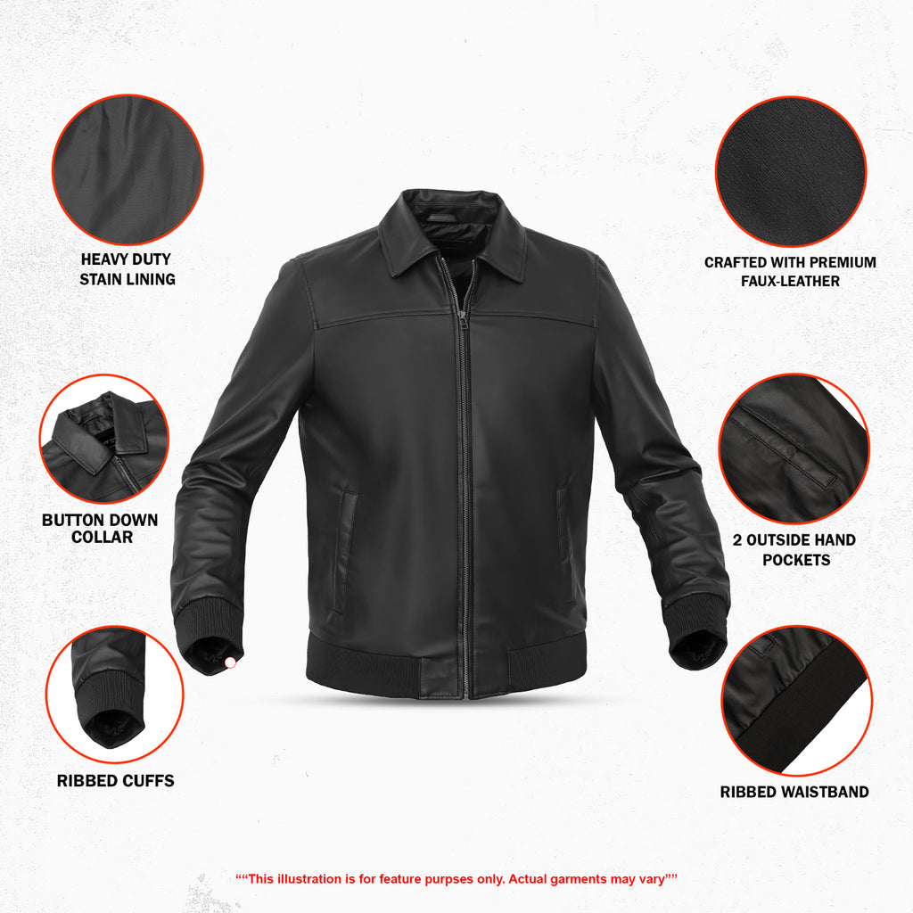 The Ravven Men’s Faux Leather Motorcycle Jacket brings together rugged style and modern functionality, designed for riders who appreciate comfort, practicality, and a sleek edge. Made from high-quality low-grain PU leather, this jacket delivers the timeless look of leather with a lightweight, easy-care finish — perfect for everyday rides or casual wear. Featuring a full black outer shell, the Ravven boasts a minimalist yet bold aesthetic. Its Korean black lining ensures a soft, comfortable interior, while the ribbed cuffs and hem provide a snug fit and help retain warmth. The metal zipper down the front adds a polished touch, making it ideal for both on and off the bike.