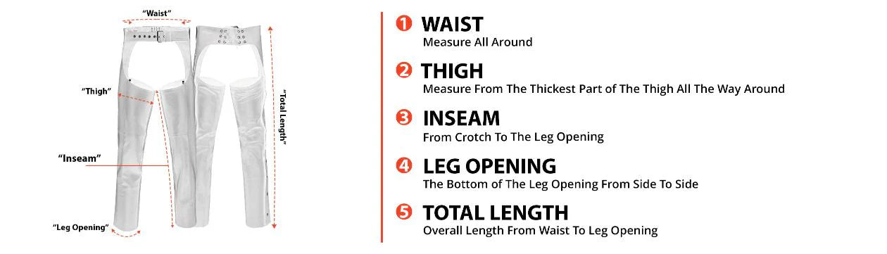 These chaps feature a mesh underlining that ensures comfort in both hot and cold weather, keeping you cool during summer rides and warm when the temperature drops. The zipper buffer helps prevent the liner from catching in the zippers, ensuring a smooth and hassle-free experience. With unfinished hems for easy size adjustment, you can customize the fit to your needs. The heavy-duty snaps and zippers add extra durability, making these chaps a reliable choice for any rider.