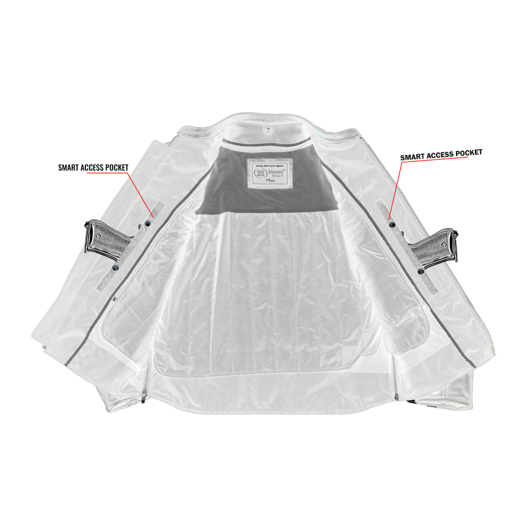Four exterior pockets and two Conceal Carry Pockets with built-in holsters provide ample storage space. Reinforced shoulder support and an action back with flex panels allow for easy mobility, while the zip-out insulated liner keeps you toasty on cooler rides.