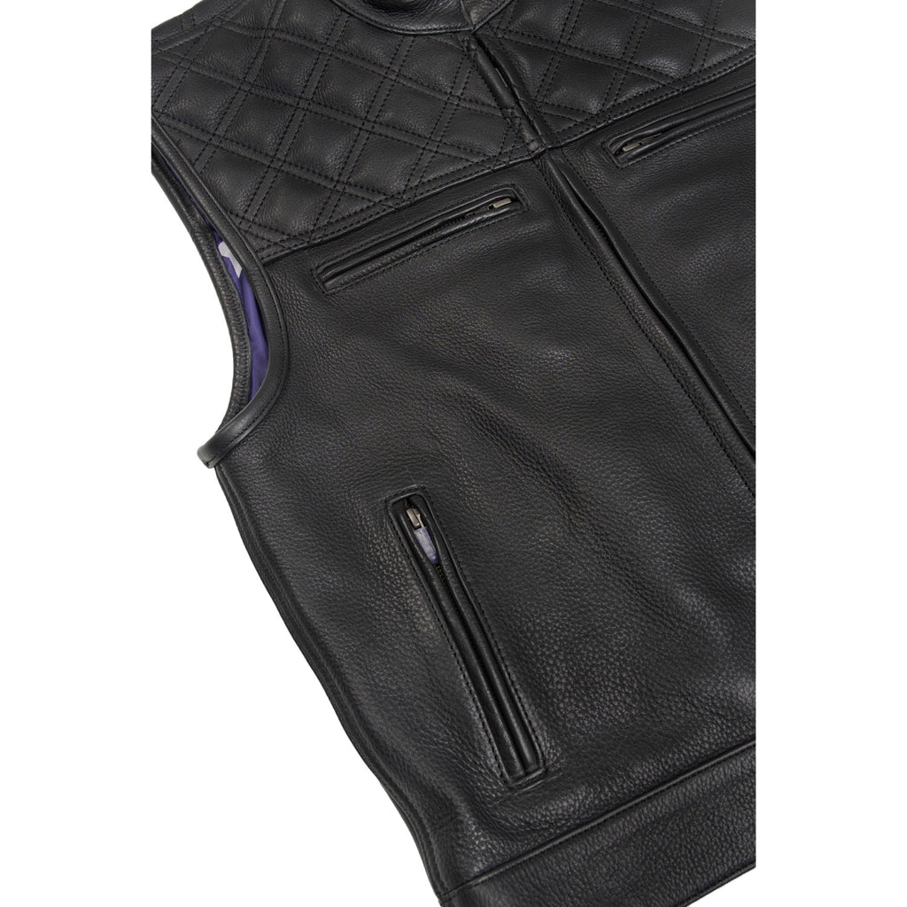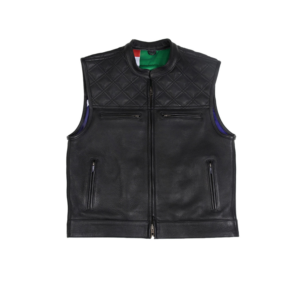 Adding a subtle layer of distinction, the upper section of the vest is finished with a Double Diamond-stitched design, adding depth, structure, and a refined visual texture without compromising the clean silhouette. The structured fit maintains its form both on and off the bike, while custom liner options allow for personal expression through interior detail.